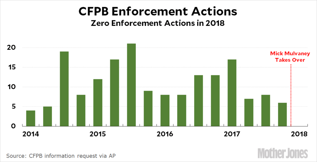 The CFPB had returned $750 million to borrowers who had been wronged by the industry, Frotman said in his letter to Mulvaney. “However, after 10 months of your leadership, it has become clear that consumers no longer have a strong, independent consumer bureau on their side.”
